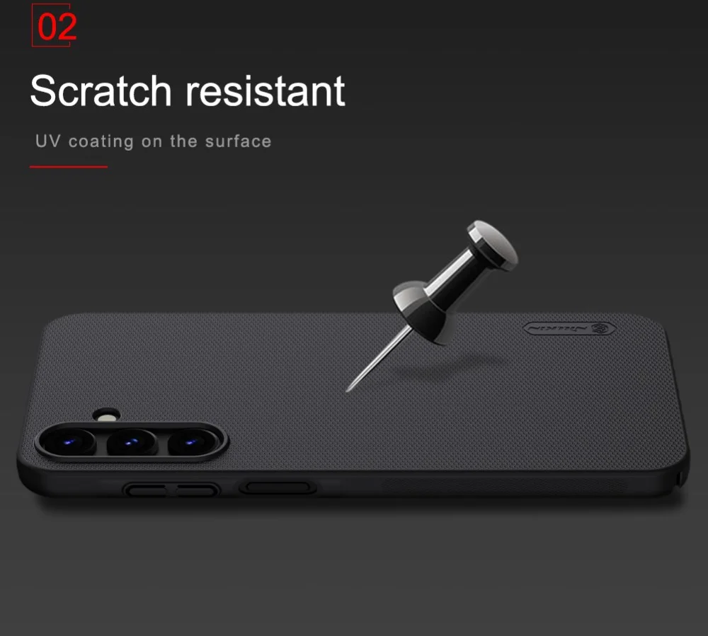 De Nillkin Super Frosted Shield is vervaardigd uit TPU randen en een hard plastic achterzijde dat is bewerkt met een matte oppervlak. Hierdoor krijg je verbeterde grip op je Samsung Galaxy A15 en krijgt je telefoon een stijlvol uiterlijk. De back cover heeft verstevigingen in de hoeken en biedt daardoor een uitstekende bescherming tegen vallen en stoten. De randen van het hoesje steken iets uit bij de camera. Zo is deze beschermd tegen krassen wanneer jij je telefoon vlak neerlegt.