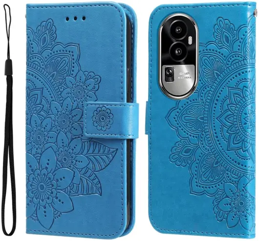 Oppo Reno 10 / 10 Pro Hoesje Bloemen Book Case met Pasjeshouder Blauw