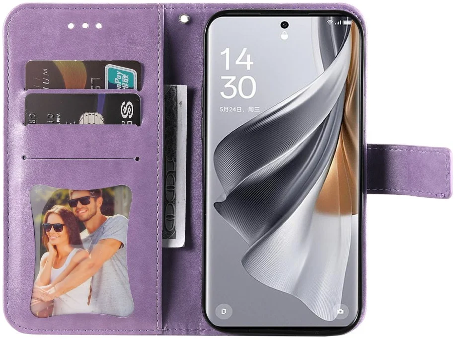 Oppo Reno 10 / 10 Pro Hoesje Bloemen Book Case met Pasjeshouder Paars