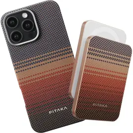 Met deze Bundel van PITAKA geniet je van premium kwaliteit, waarbij het hoesje en de MagSafe powerbank elkaar perfect aanvullen voor zowel bescherming als gemak. het hoesje en de powerbank zijn gemaakt van aramidevezels! Dit high-tech materiaal staat bekend om zijn uitzonderlijke sterkte, lichtheid en weerstand tegen krassen, corrosie en verkleuring en wordt veel gebruikt in de lucht- en ruimtevaartindustrie en in kogelvrije vesten. Naast de uitzonderlijke sterkte van de powerbank en van het hoesje, is het materiaal van deze PITAKA MagEZ 6 Back Cover met slechts 1mm volume ultradun en weegt het slechts 17,95 gram! De powerbank heeft een capaciteit van 5000mAh en laad je iPhone 16 Pro ongeveer één keer volledig op. Aan de LED-lampjes aan de achterkant van de powerbank zie je wanneer je de powerbank weer moet opladen.