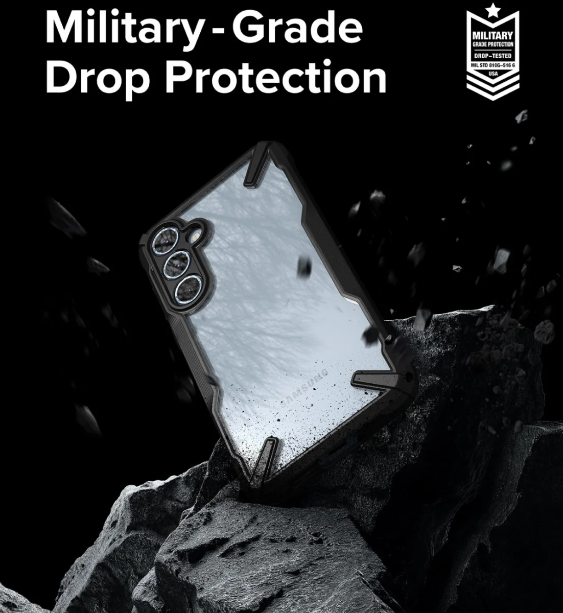 De Ringke Fusion X is een uniek, grotendeels transparant Samsung Galaxy A55 hoesje met een speciale antikras coating. Een schokbestendig TPU kussen dat je Samsung Galaxy A55 omringt, vangt iedere val en klap die het te verduren krijgt maximaal op. Samen met de militaire standaard zorgt dit voor een stijlvolle maar optimale bescherming. Door de verhoogde randen bij de camera en de display zijn deze ook beschermd tegen slijtage en krassen wanneer jij je Samsung Galaxy A55 vlak neerlegt op bijvoorbeeld een tafel of bureau.