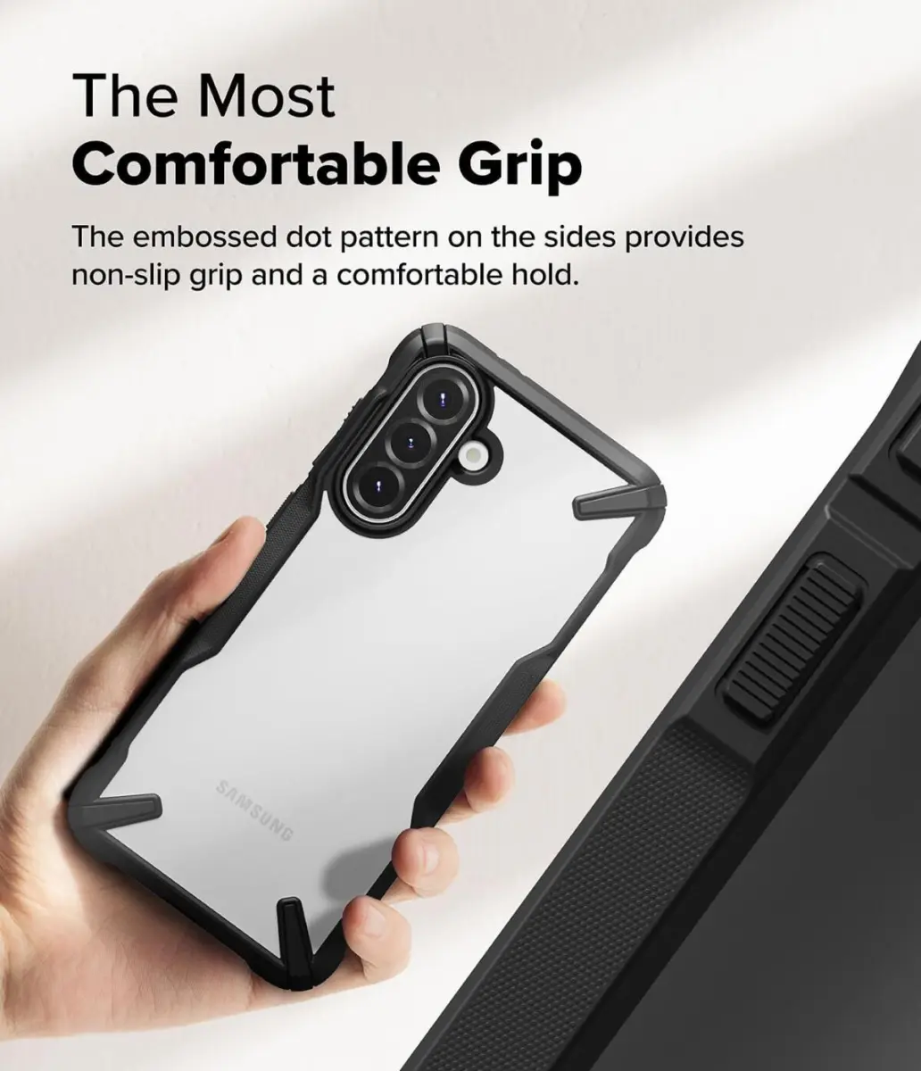 De Ringke Fusion X is een uniek, grotendeels transparant Samsung Galaxy A56 / A36 hoesje met een speciale antikras coating. Een schokbestendig TPU kussen dat je Samsung Galaxy A56 / A36 omringt, vangt iedere val en klap die het te verduren krijgt maximaal op. Samen met de militaire standaard zorgt dit voor een stijlvolle maar optimale bescherming. Door de verhoogde randen bij de camera en de display zijn deze ook beschermd tegen slijtage en krassen wanneer jij je Samsung Galaxy A56 / A36 vlak neerlegt op bijvoorbeeld een tafel of bureau.