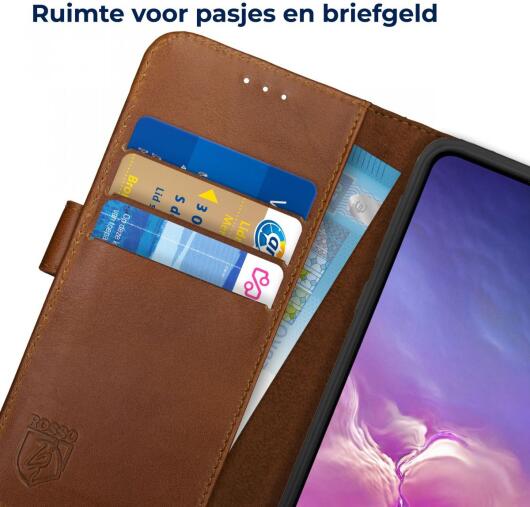 Rosso Deluxe Samsung Galaxy S10E Hoesje Echt Leer Book Case Bruin