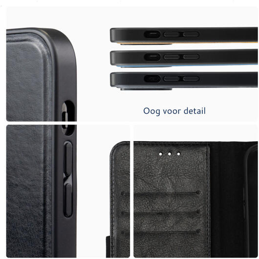 - Magnetische sluiting bevestigd aan de linkerzijde zodat deze niet in de weg zit als je je telefoon gebruikt