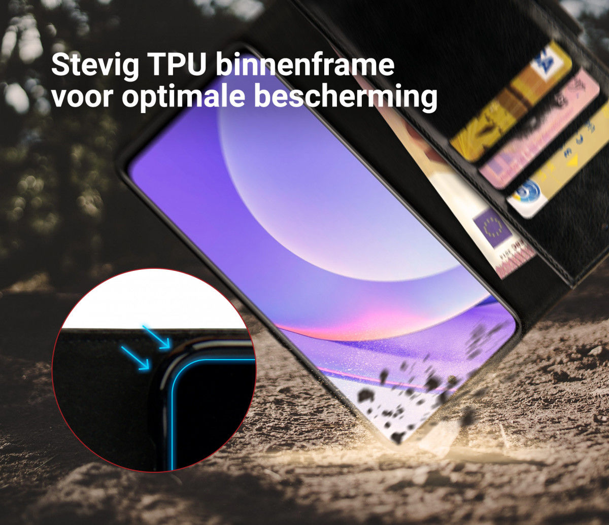 - Deze book case beschermt de voor- en achterkant van je telefoon.