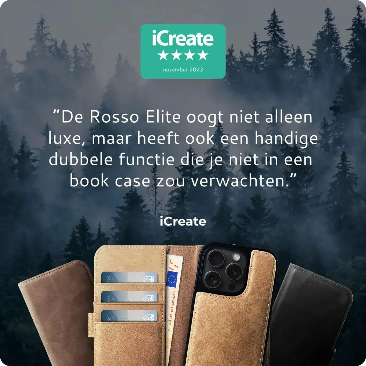 Door een ingebouwde magneet in de back cover is de Rosso Elite compatibel met MagSafe en Qi2. Hierdoor bevestig je compatibele accessoires zoals een kaarthouder of oplader magnetisch op de achterkant van het hoesje.