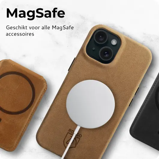 Rosso Elite iPhone 15 Hoesje Leer Back Cover MagSafe Lichtbruin