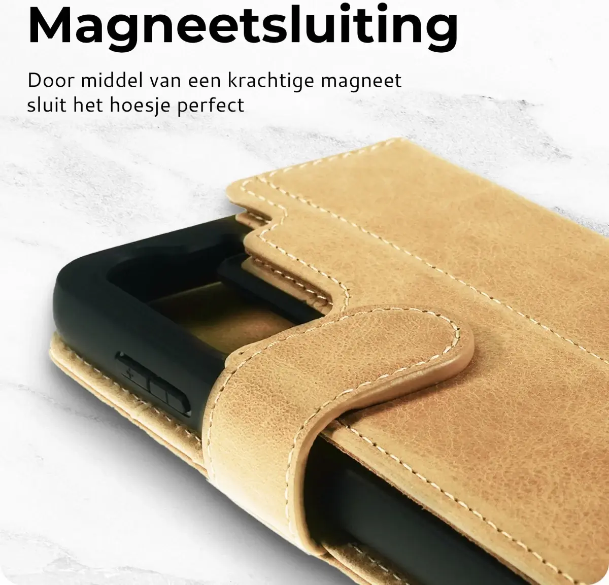 Aan de binnenzijde vind je drie kaartsleuven voor een veilige opslag van je drie belangrijkste pasjes en briefgeld, zodat je portemonnee al snel overbodig wordt. Ook heeft het hoesje een stand functie, waarmee je foto's en video's bekijkt in landscape. Door de magneetsluiting wordt het hoesje stevig gesloten.