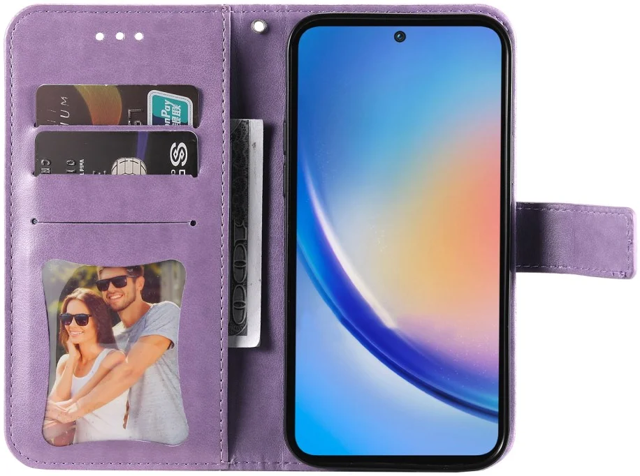 Samsung Galaxy A35 Hoesje Bloemen Book Case met Pasjeshouder Paars