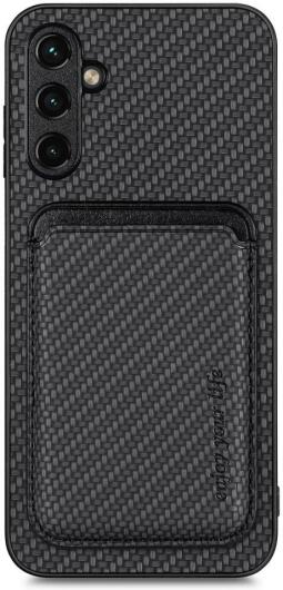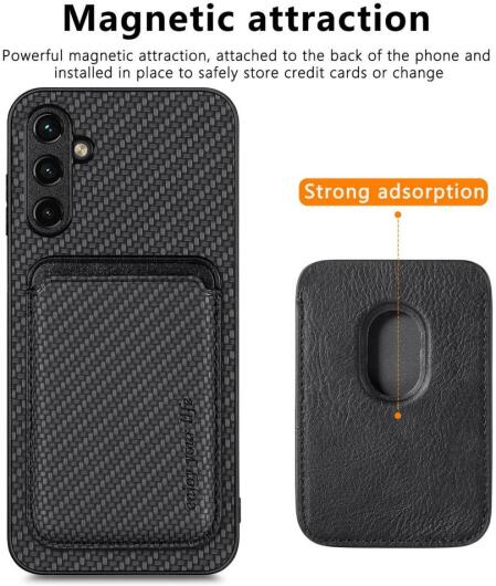 Samsung Galaxy A54 Carbon Hoesje met Magnetische Kaarthouder Zwart