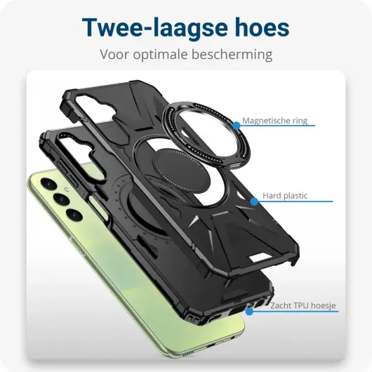 Samsung Galaxy A55 Hoesje MagSafe Magnetische Ring Stand Zwart