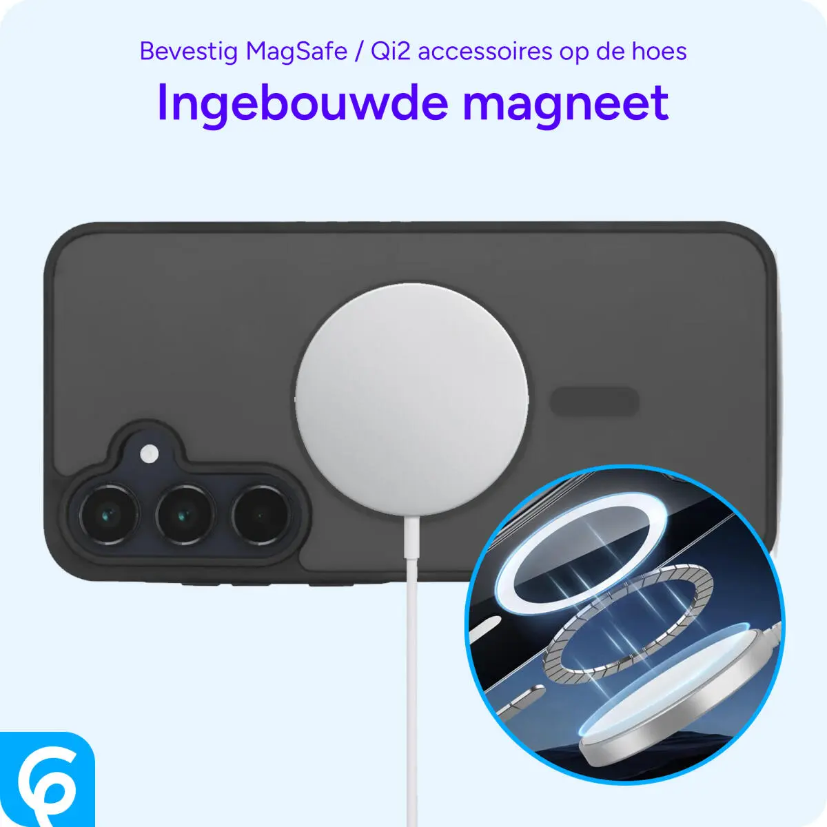 Let op! Deze Samsung telefoon ondersteunt geen draadloos opladen. De Magsafe accessoires zijn dus alleen bedoeld om de telefoon vast te houden.