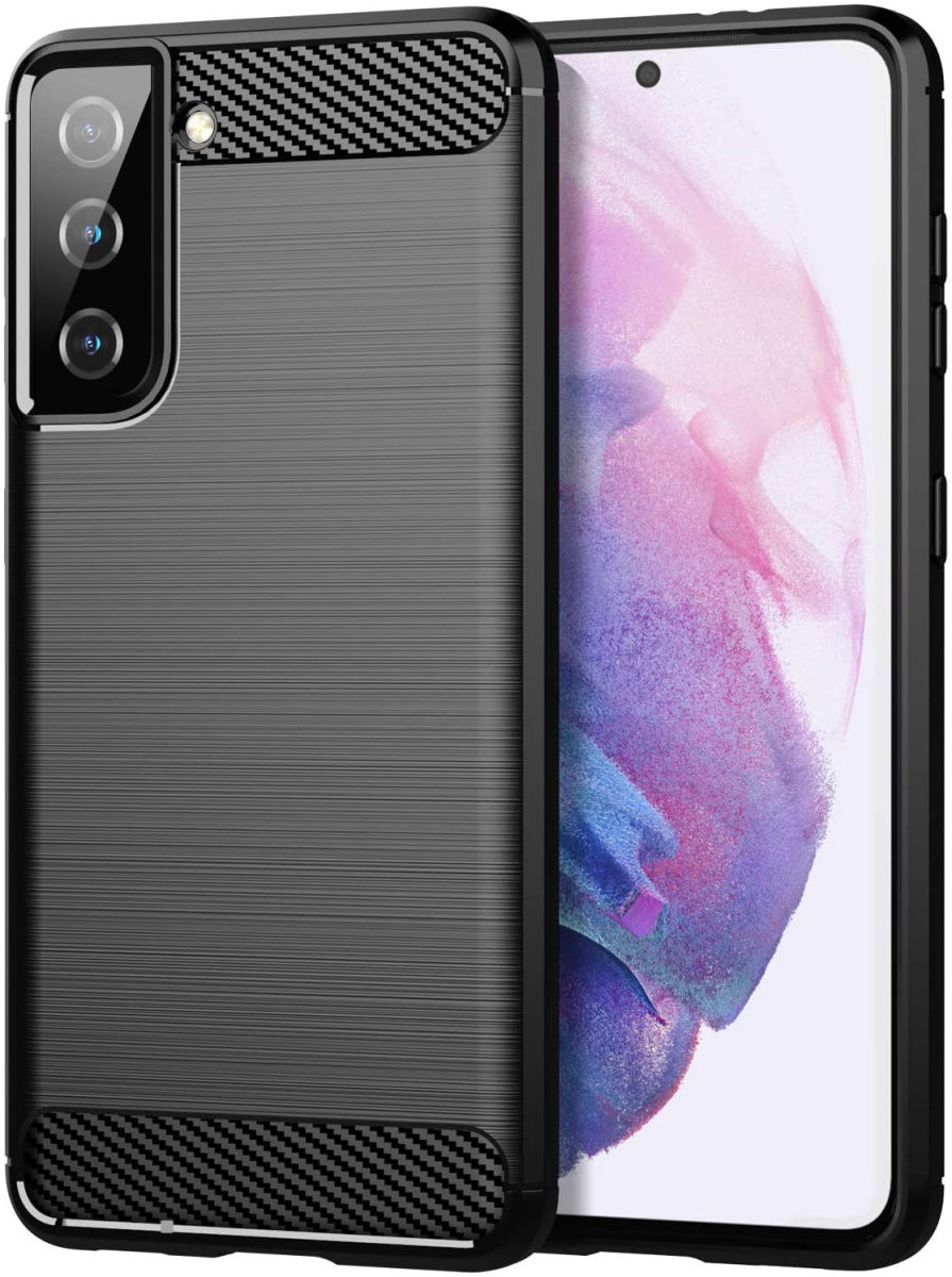 Samsung Galaxy S21 Hoesje Geborsteld TPU Flexibele Back Cover Zwart