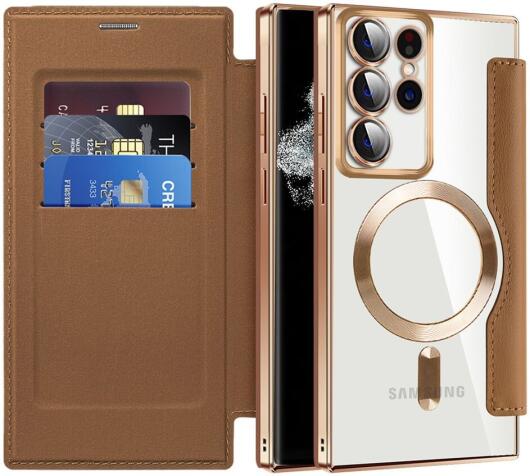Samsung Galaxy S22 Ultra Hoesje MagSafe RFID Pasjeshouder Bruin