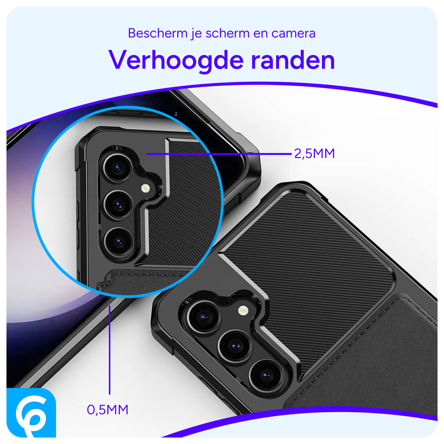 - Verhoogde randen bij de camera en het scherm bieden extra bescherming tegen krassen en beschadigingen.