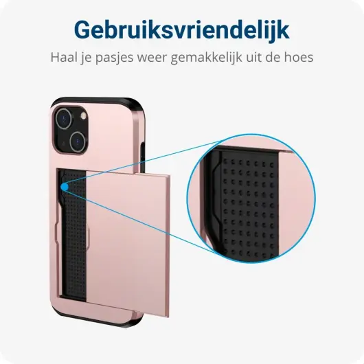 Dit Samsung Galaxy S23 FE hoesje beschikt over een handige, schuifbare kaarthouder. Hierin kun jij je twee belangrijkste pasjes, zoals je bankpas of ID-kaart in opbergen. Je portemonnee kun je met dit Galaxy S23 FE hoesje gerust thuis laten. De back cover biedt een dubbellaagse bescherming van hard plastic en TPU tegen vallen en stoten. De verhoogde randen bij de camera en het scherm zorgen ervoor dat deze het oppervlak niet raken wanneer jij je Samsung Galaxy S23 FE vlak neerlegt op een tafel of bureau.