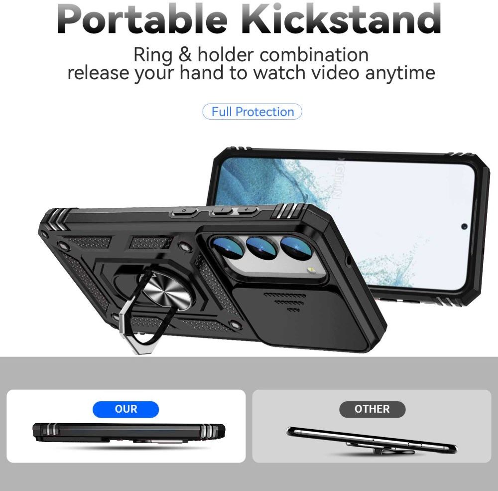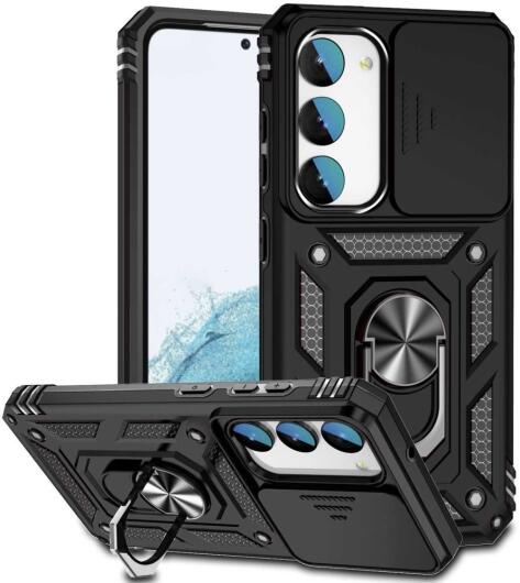 Samsung Galaxy S23 Hoesje met Camera Slider en Kickstand Ring Zwart