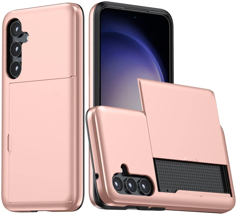 Samsung Galaxy S23 Hoesje met Slider Kaarthouder Back Cover Roze Goud