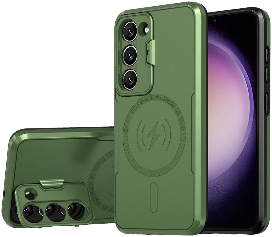 Samsung Galaxy S23 MagSafe Hoesje Camera Protector Kickstand Groen