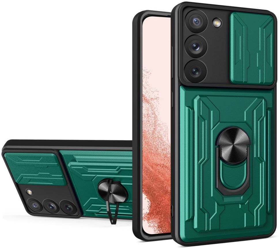 Samsung Galaxy S23 Plus Hoesje Camera Slider/Ring/Kaarthouder Groen