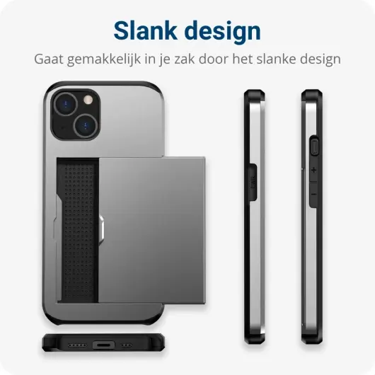 Dit Samsung Galaxy S24 hoesje beschikt over een handige, schuifbare kaarthouder. Hierin kun jij je twee belangrijkste pasjes, zoals je bankpas of ID-kaart in opbergen. Je portemonnee kun je met dit Galaxy S24 hoesje gerust thuis laten. De back cover biedt een dubbellaagse bescherming van hard plastic en TPU tegen vallen en stoten. De verhoogde randen bij de camera en het scherm zorgen ervoor dat deze het oppervlak niet raken wanneer jij je Samsung Galaxy S24 vlak neerlegt op een tafel of bureau.