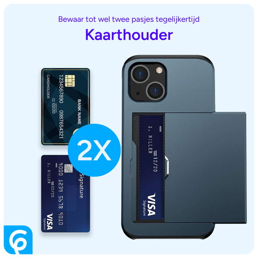 Dit Samsung Galaxy S25 hoesje beschikt over een handige, schuifbare kaarthouder. Hierin kun jij je twee belangrijkste pasjes, zoals je bankpas of ID-kaart in opbergen. Je portemonnee kun je met dit Galaxy S25 hoesje gerust thuis laten. De back cover biedt een dubbellaagse bescherming van hard plastic en TPU tegen vallen en stoten. De verhoogde randen bij de camera en het scherm zorgen ervoor dat deze het oppervlak niet raken wanneer jij je Samsung Galaxy S25 vlak neerlegt op een tafel of bureau.