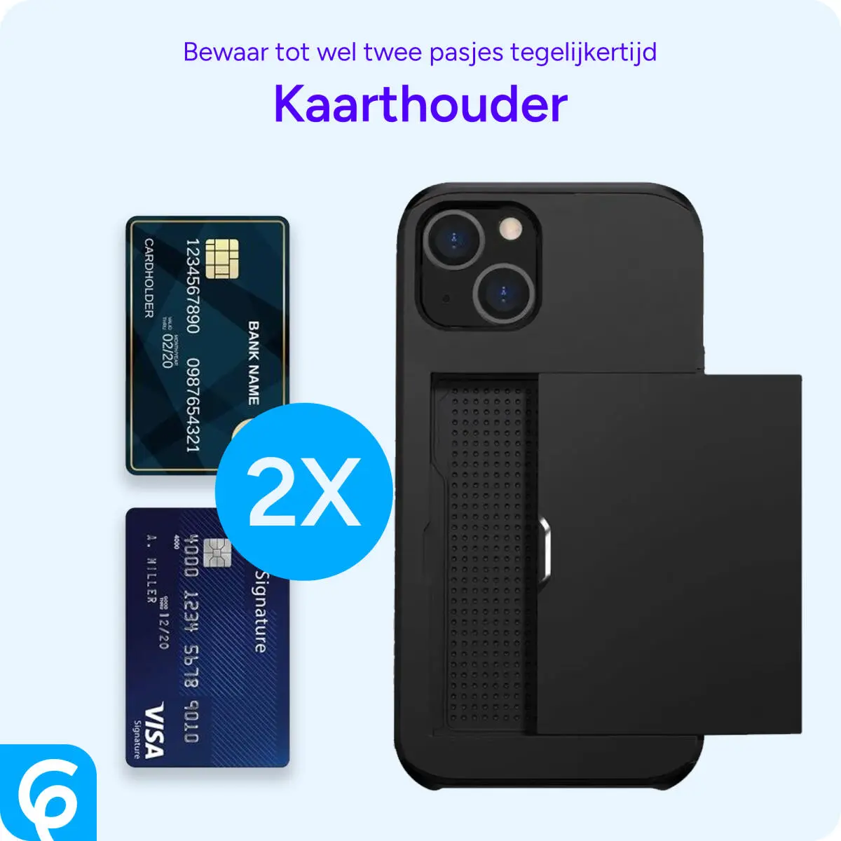 - Berg twee pasjes veilig op in de schuifbare kaarthouder.