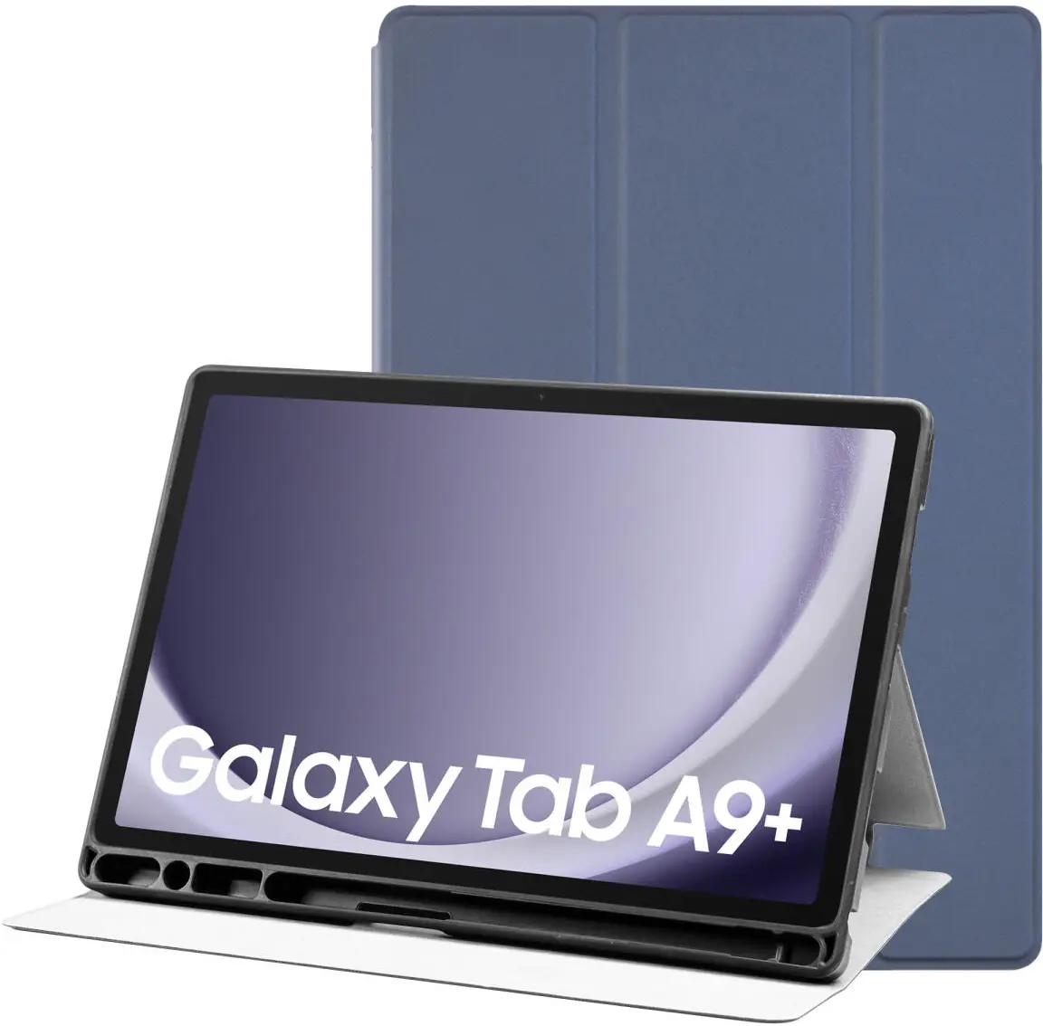 Samsung Galaxy Tab A9 Plus Hoes Luxe Tri-Fold Book Case Kunst Leer Blauw