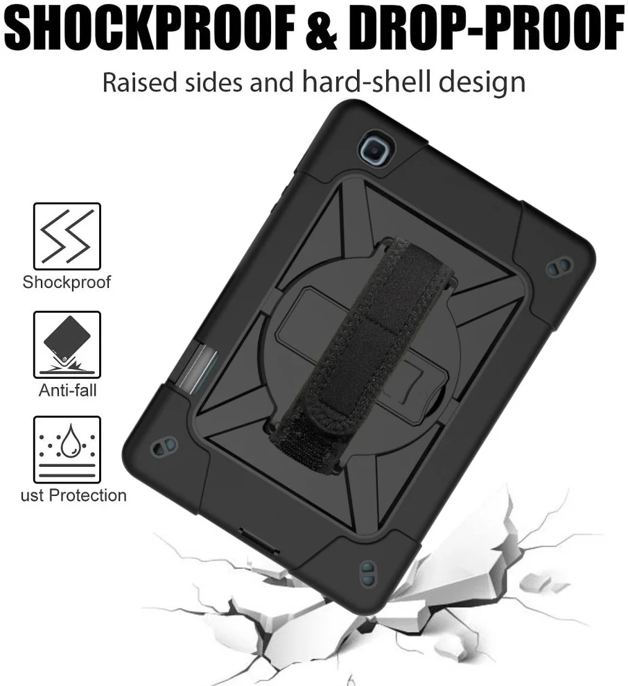 Jouw Samsung Galaxy Tab S6 Lite wordt optimaal beschermd met deze back cover. Deze hoes is vervaardigd uit een hard plastic binnenframe met een schokbestendige siliconen buitenzijde. Samen met de verstevigde hoeken zorgt dit voor goede bescherming tegen vallen en stoten. In de achterzijde zit een 360° draaibare kickstand die je in twee standen kunt afstellen, zodat jij je tablet in de gewenste kijkhoek kan plaatsen. De hoes wordt geleverd met een handige schouderriem die je om je nek kunt hangen, waardoor je de kans op vallen verkleint.
