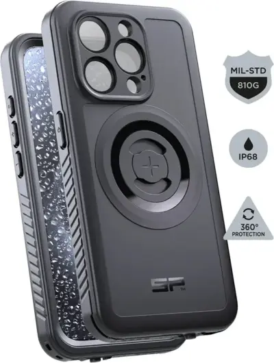 De SP Connect Xtreme beschermt de voor- en achterkant van je Apple iPhone 15 Pro voor een 360 graden bescherming tegen schade. Het hoesje is volledig afgedicht en beschermt daarom ook tegen water, stof en vuil. Hierdoor neem jij je telefoon mee tijdens elk avontuur in alle weersomstandigheden en kun je er gerust mee door de regen fietsen of lopen. Door de IP68-certificering biedt het hoesje het hoogste beschermniveau tegen invloeden van buitenaf. De case is getest volgens de militaire standaard normen en beschermt daarom uitstekend tegen schade. Het hoesje heeft een ingebouwde magneet, waardoor deze geschikt is voor MagSafe accessoires en magnetische SPC+ houders. De unieke uitsparing op de achterkant die speciaal is gemaakt voor het twist-to-lock mechanisme van de SPC+ producten van SP Connect (apart verkrijgbaar) zorgt voor een gemakkelijke bevestiging op al je verschillende SPC+ accessoires. Dankzij dit beveiligingssysteem bevestig jij je telefoon stevig in de bijpassende accessoires zitten en valt deze er niet uit.
