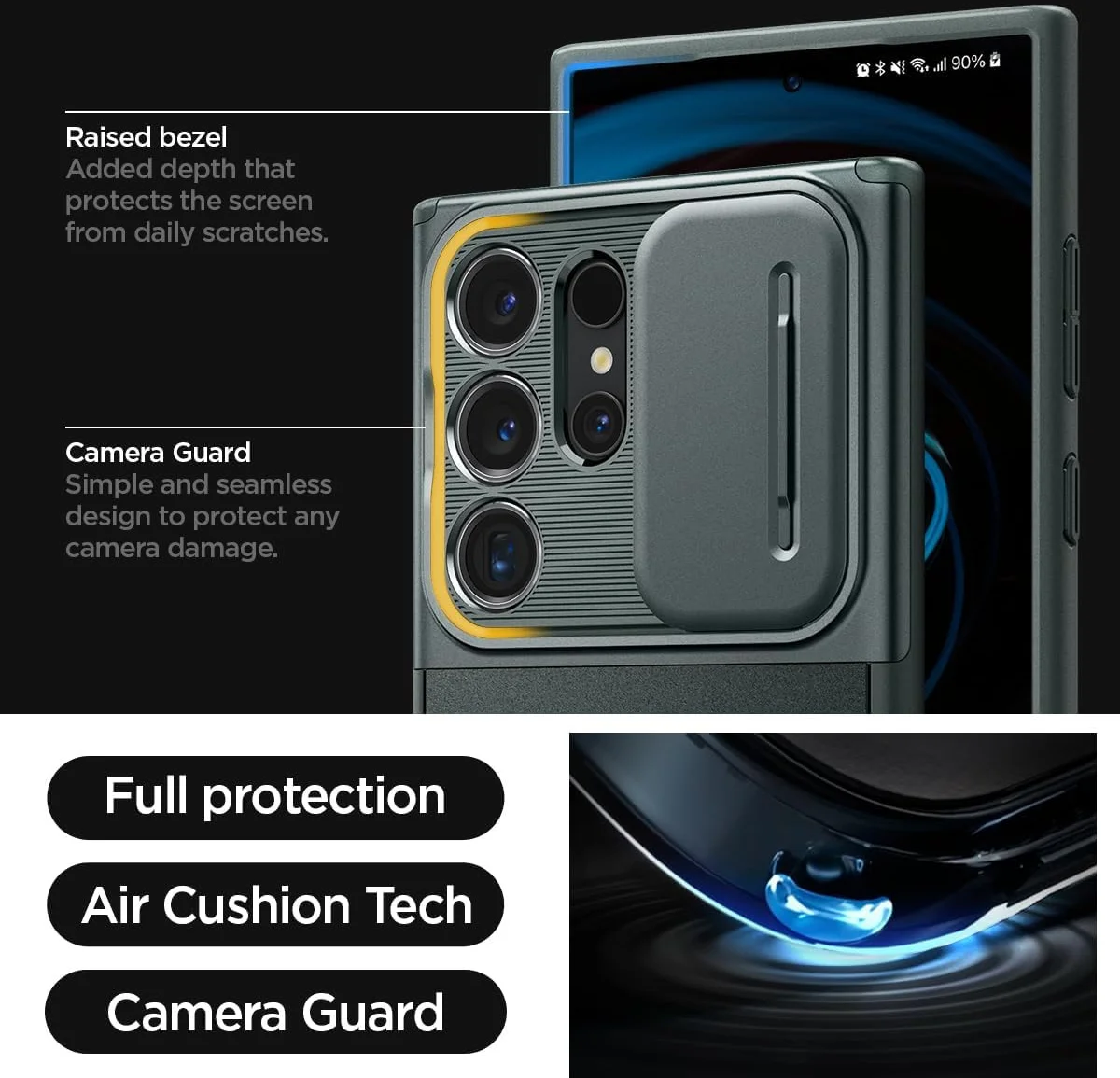 Spigen Optik Armor Samsung Galaxy S24 Ultra Hoesje Camera Slider Groen