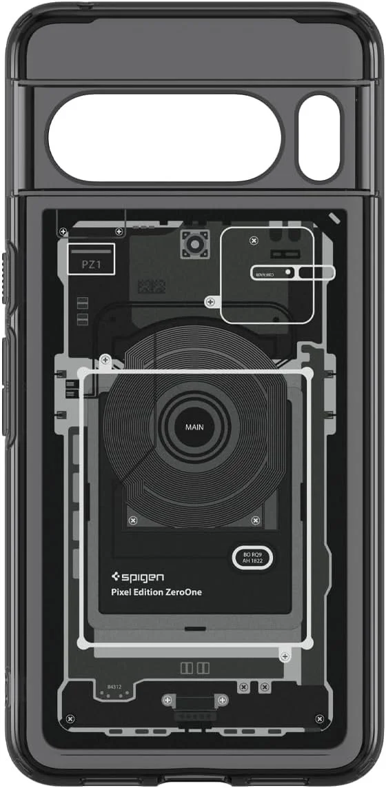 De Spigen Ultra Hybrid Zero One laat je in de binnenkant van de Google Pixel 8 Pro kijken terwijl deze wordt beschermd tegen vallen, krassen en saaie looks. Het hoesje is gemaakt van een hard plastic achterzijde met TPU randen die voorzien zijn van Air Cushion technologie. Samen met de militaire standaard en verhoogde randen bij de camera en het scherm zorgt dit voor een optimale bescherming voor je telefoon.