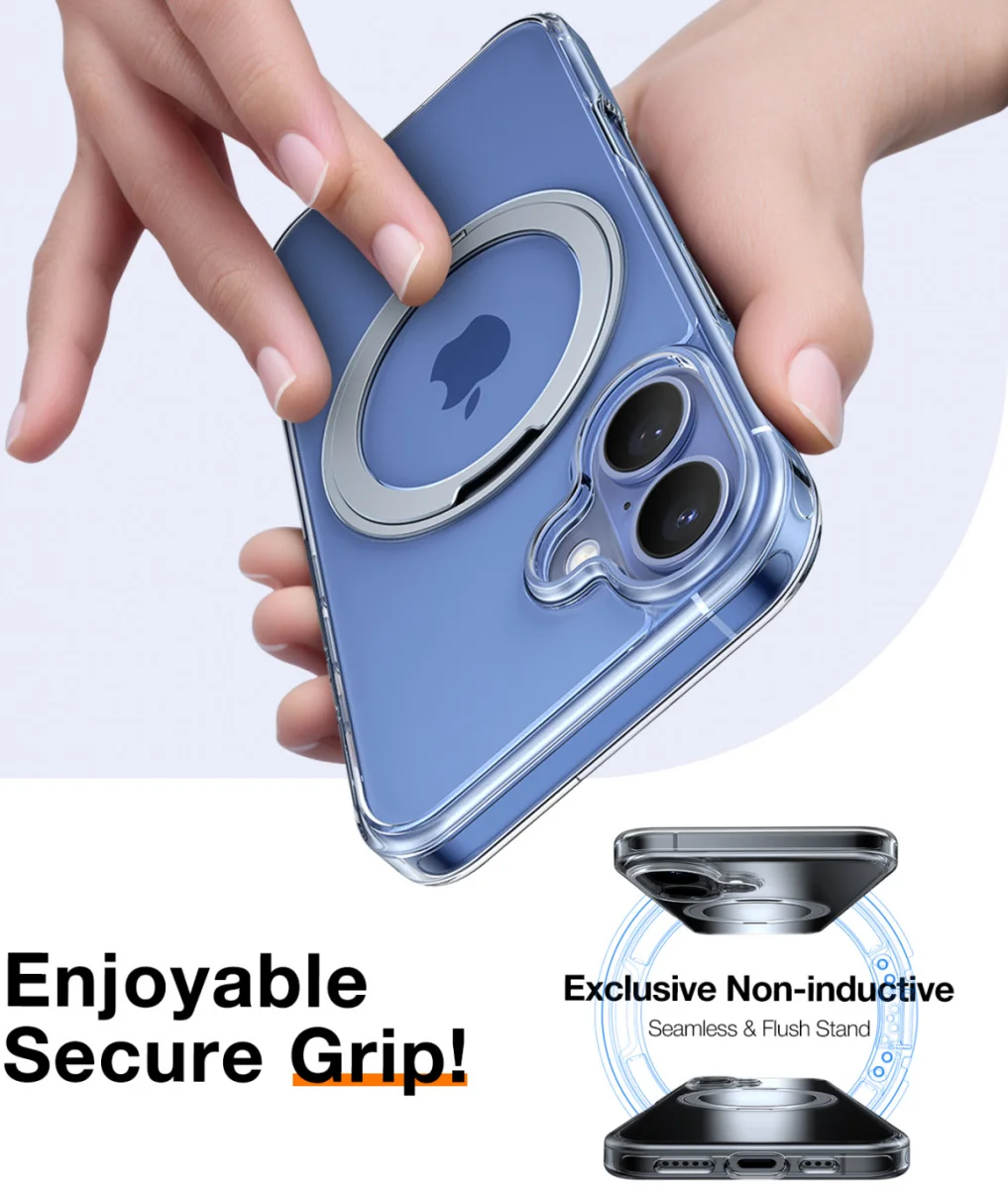 TORRAS Ostand Pro MagSafe Apple iPhone 16 Hoesje 360° MagSafe Stand Transparant