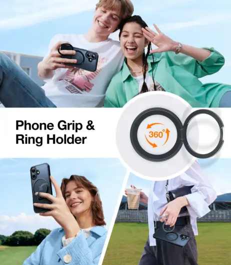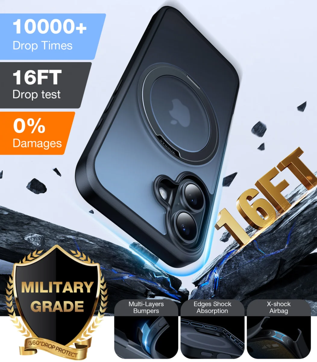 TORRAS Ostand Pro MagSafe Apple iPhone 16 Hoesje 360° MagSafe Stand Zwart