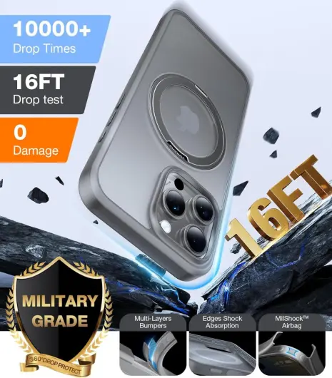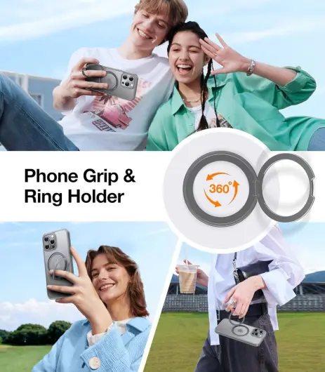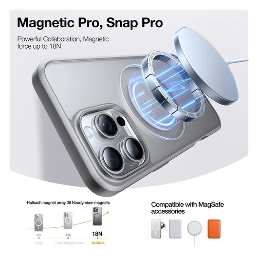 TORRAS Ostand Pro MagSafe iPhone 16 Pro Max Hoesje 360° MagSafe Stand Grijs