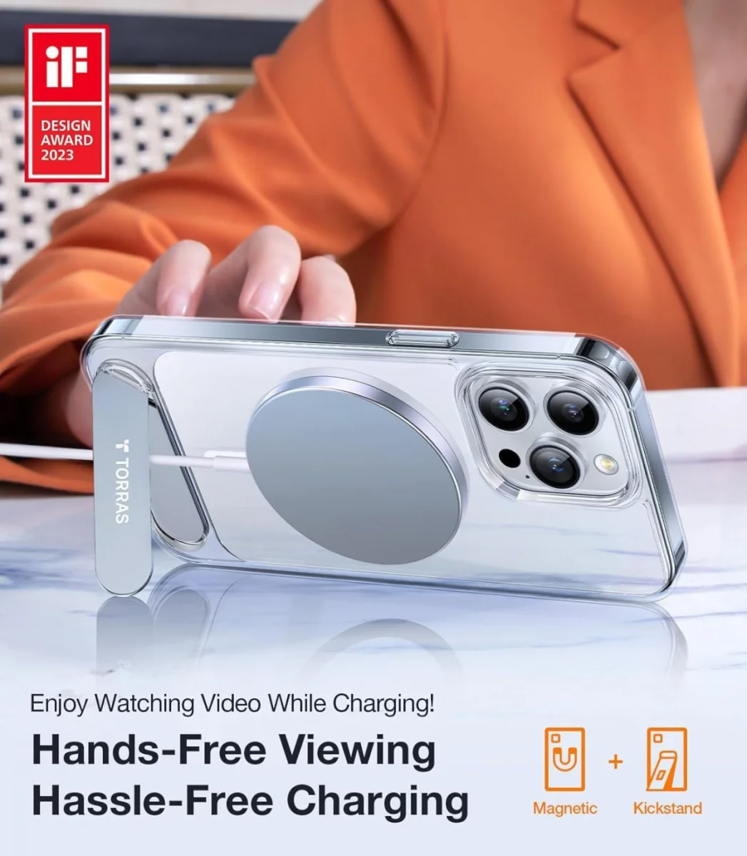 Dit TORRAS UPro Pstand Hoesje voor jouw iPhone 15 Pro integreert een stijlvol design, krachtige MagSafe magneten, een multifunctionele Kickstand en bescherming van militaire kwaliteit, allemaal tegelijk!