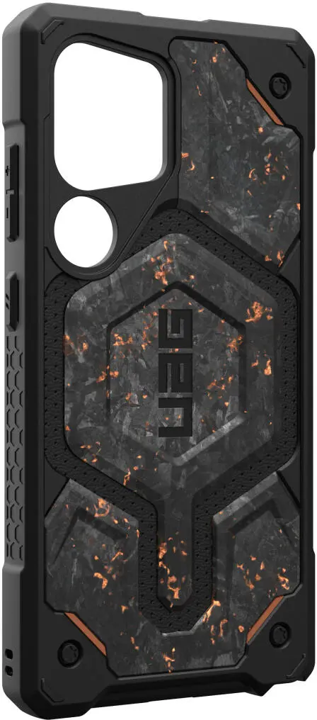 Deze Limited Edition UAG Monarch Pro is één van de meeste exclusieve en robuuste cases van UAG en combineert een baanbrekend design met geavanceerde techniek. Deze Forged Carbon case biedt de sterkte van titanium met 1/3e van het gewicht. Met de hand gelegde gesmede carbon chips met koperen details geven elke case een unieke nerf die een opvallende esthetiek biedt, aangevuld met levendige oranje accenten.