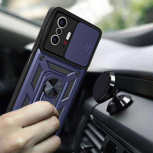 Xiaomi Mi 11T / 11T Pro Hoesje Camera Slider en Kickstand Ring Blauw