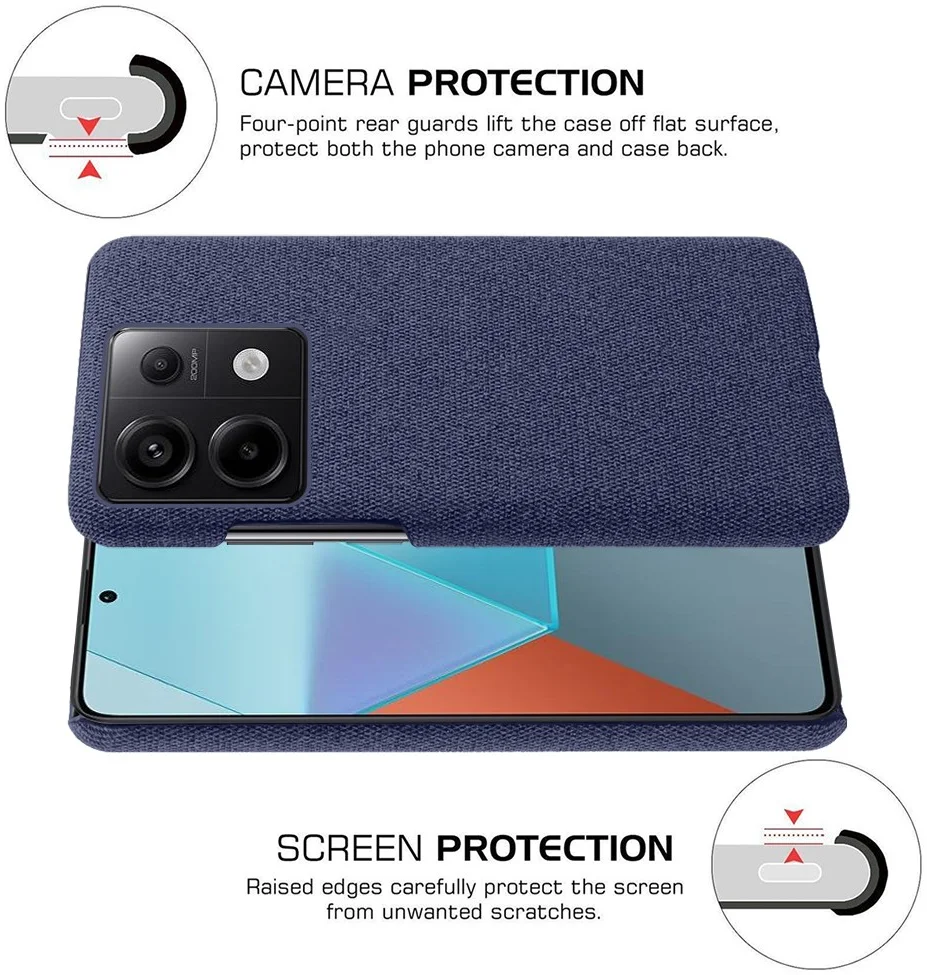 Dit Xiaomi Redmi Note 13 Pro 5G / Poco X6 hoesje laat je telefoon er stijlvol uitzien. Het hoesje heeft een TPU achterkant waarop stof is gecoat waardoor de back cover een modieuze textuur krijgt. Het hoesje beschermt de achterkant van je Redmi Note 13 Pro 5G / Poco X6 tegen krassen, stoten en andere dagelijkse schade. Door het slanke design wordt er nauwelijks volume en gewicht toegevoegd.