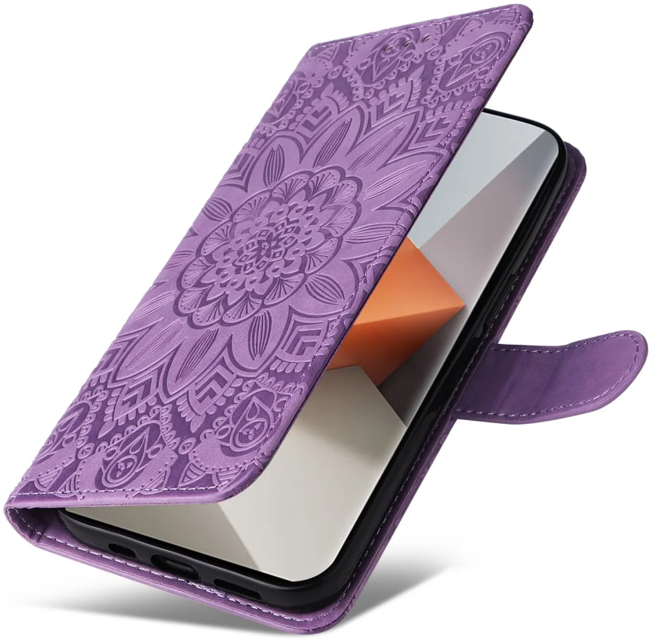 Xiaomi Redmi Note 13 Pro Plus Hoesje Zonnebloem Wallet Book Case Paars