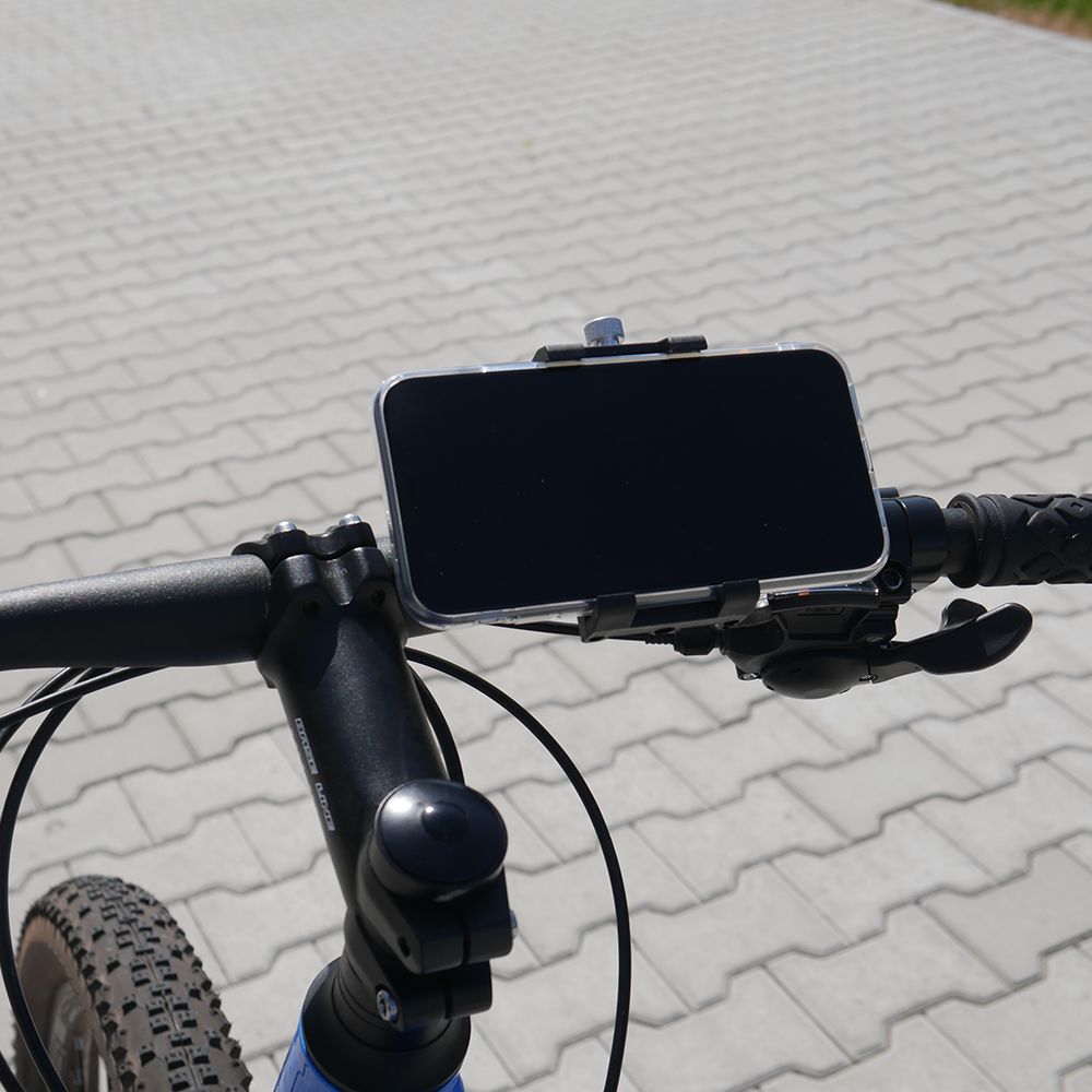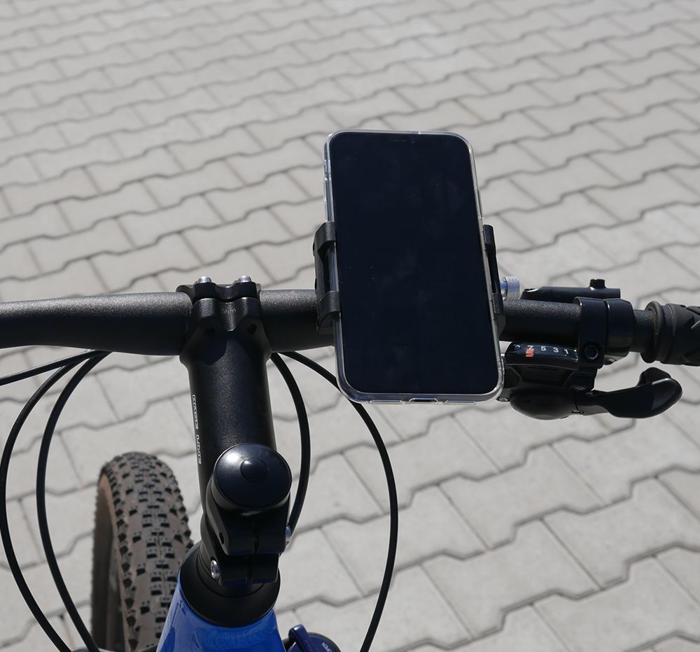 De plastic houder heeft vier klemmen waarmee de telefoon wordt vastgezet. Draai de grijze draaiknop aan de zijkant aan zodat uw telefoon goed strak zit. Kussentjes om schade aan uw telefoon te voorkomen worden bijgeleverd. Deze fietshouder is universeel, waardoor vrijwel alle smartphones met de houder te gebruiken zijn. Elke smartphone tussen de 5 en 10 centimeter breed past in de houder, ook als deze in een hoesje zit. Omdat de plastic klemmen dik en zeer sterk zijn is deze houder ideaal geschikt voor het gebruik op een mountainbike.