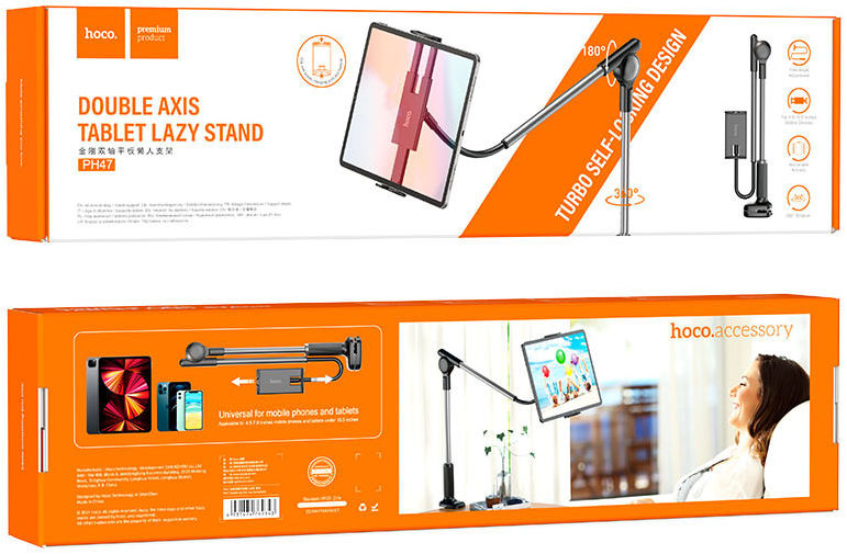 Deze Hoco houder is perfect voor wanneer jij handsfree een serie of video wilt bekijken aan je bureau of in bed. Je klemt deze houder aan je bureau, nachtkastje of tafel waarna jij je telefoon (4.5 tot 7 inch) en tablet/iPad tot 10.5 inch stevig in de houder plaatst (klembereik 125 tot 245mm). De houder heeft een verstelbaar ontwerp tot 1.1 meter hoogte en een aanpasbare hoek waardoor jij je serie of video kunt bekijken in de gewenste positie. Hierdoor kijk je vanuit de meest comfortabele hoek naar je film of serie.