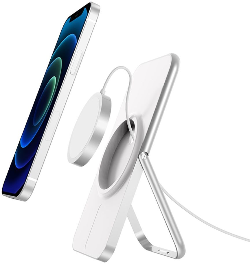 Met deze verstelbare, opvouwbare houder kun je je smartphone op je bureau of tafel neerzetten én (eventueel) tegelijkertijd opladen. Deze houder is namelijk zo ontworpen dat hij door de handige uitsparingen perfect te gebruiken is in combinatie met de officiële MagSafe lader. Hierdoor kun je, wanneer je over een MagSafe oplader beschikt, je iPhone met MagSafe compatibele hoesjes opladen wanneer je je MagSafe compatibele iPhone op de stand neer zet. Door het compacte en opvouwbare design is de oplader gemakkelijk mee te nemen.