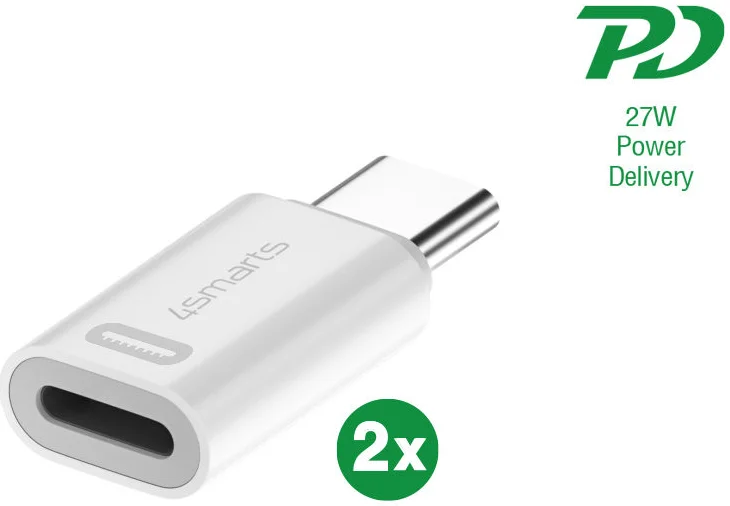 4smarts Apple USB-C naar Apple Lightning Adapter 27W PD Wit (2-Pack)