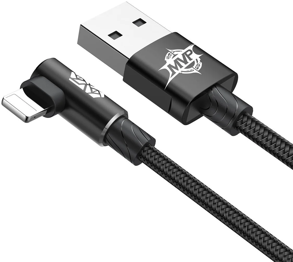 Baseus MVP 90° 2A USB naar Lightning Kabel 1M Haakse Hoek Zwart