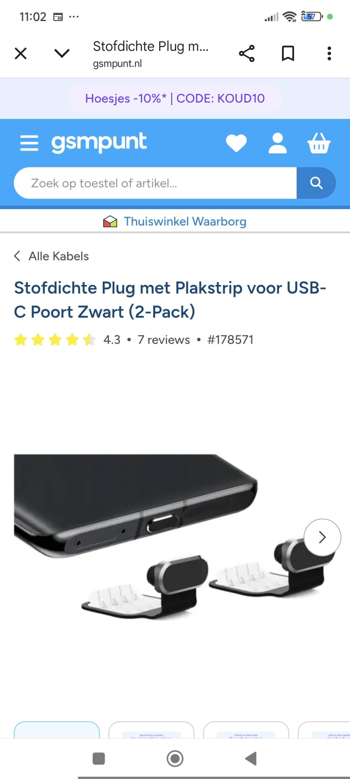 Geweldig artikel die stofdichte usb-c plug met plakstrip.