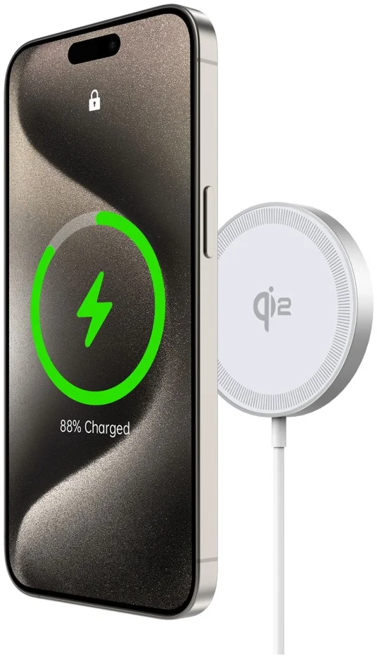 Met de Duzzona W18 laad jij je iPhone 12 of nieuwer gemakkelijk en snel draadloos op. Door een ingebouwde magneet in de lader en je telefoon klik jij je iPhone met MagSafe magnetisch vast op de lader. Hierdoor zit deze altijd goed op de plek en laadt deze goed op. De lader heeft Qi2, wat de opvolger is van Qi1 voor verbeterd draadloos opladen. Je laadt je iPhone op met maximaal 15W. Je moet hiervoor wel de 1 meter lange ingebouwde USB-C kabel aansluiten op een 20W Power Delivery adapter die snelladen ondersteunt (niet meegeleverd).