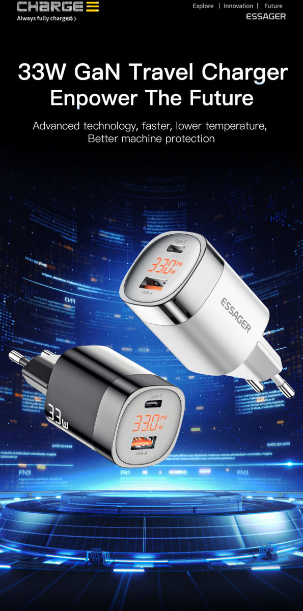 Voordelen van de Essager Lingyun 33W GaN Display Compacte Adapter