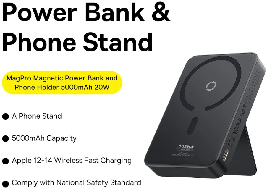 Baseus MagPro MagSafe Powerbank 20W met Standaard 5.000mAh Zwart