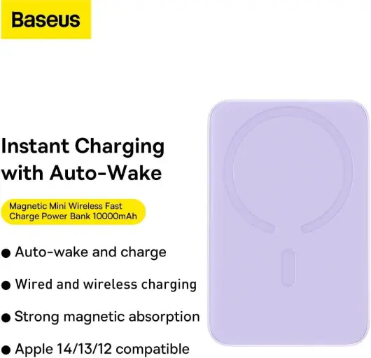 Baseus Megattach 10.000 mAh Powerbank Compact Met MagSafe Paars 20W